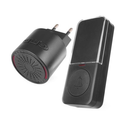 a főegység tápellátása 230 V AC, a gomb tápellátása 1× 3 V CR2032 (tartozék), hatótávolság 150 m, speciális funkciók nem
